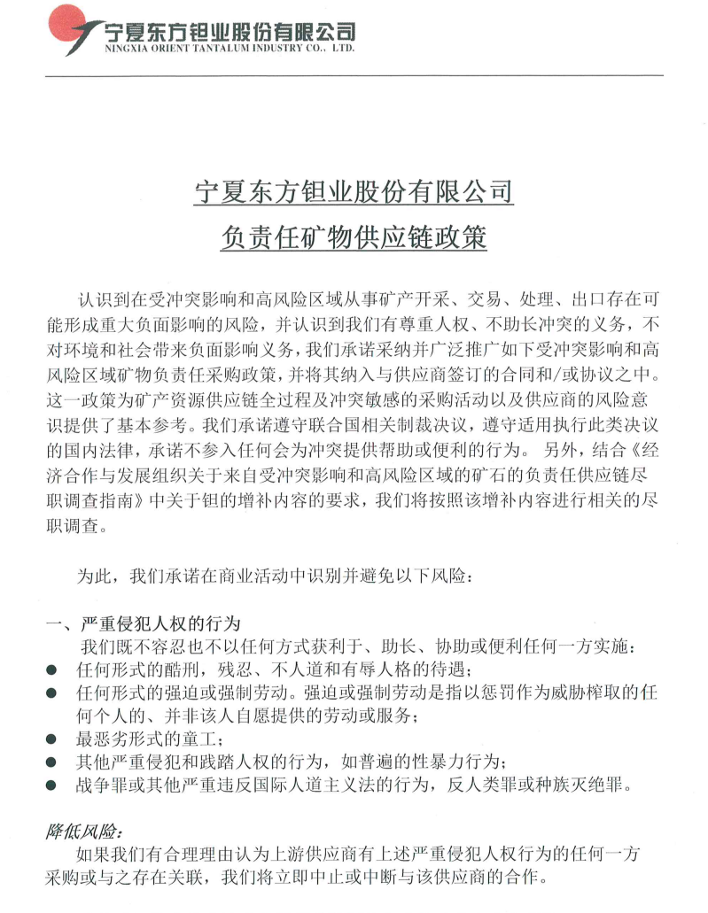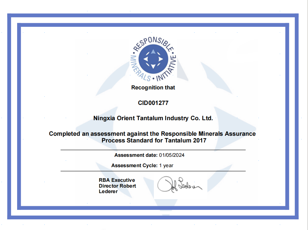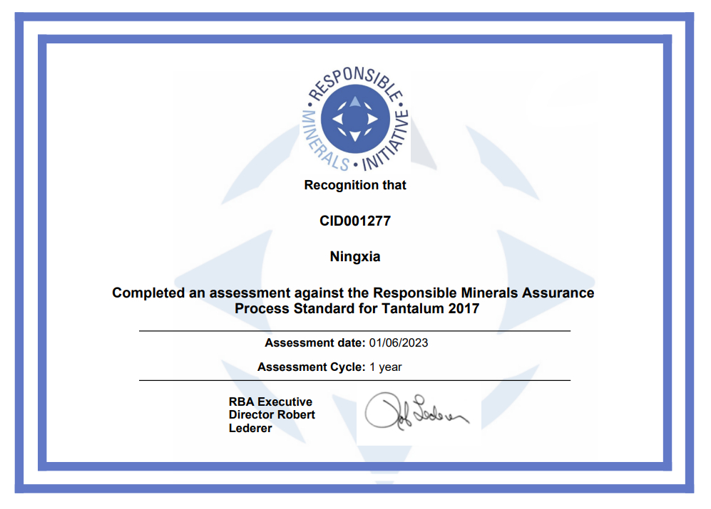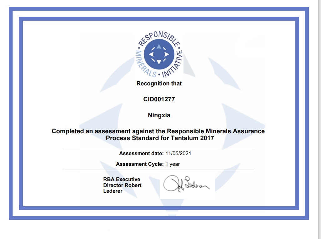 东方钽业通过2021-2022年度RMI_RMAP审核
