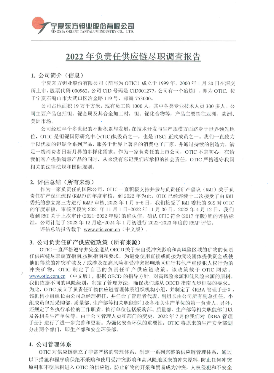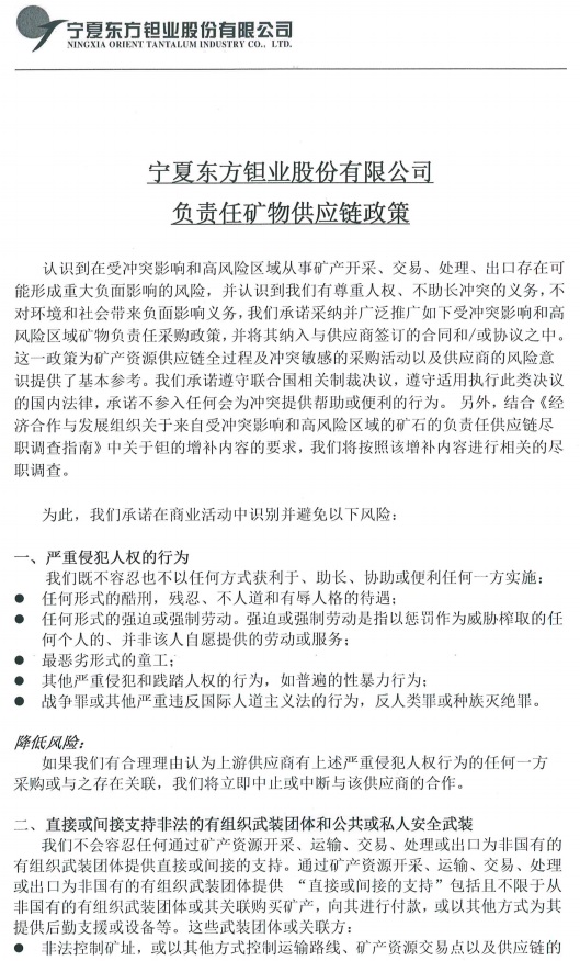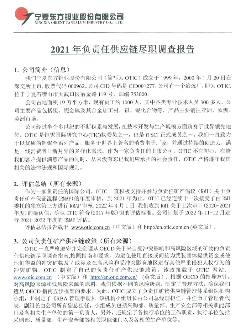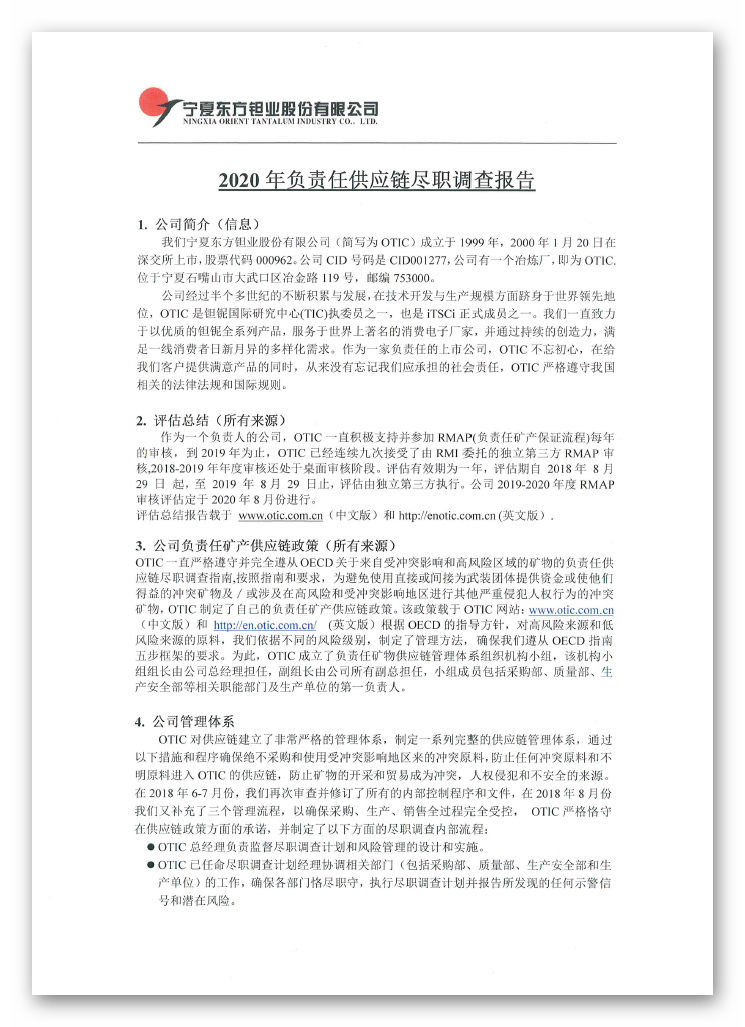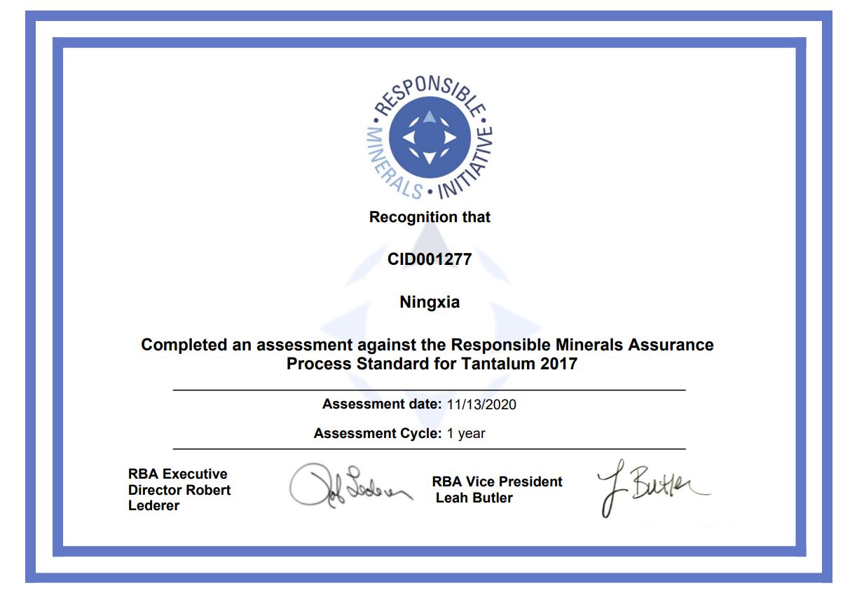东方钽业通过2019-2020年度RMI_RMAP审核